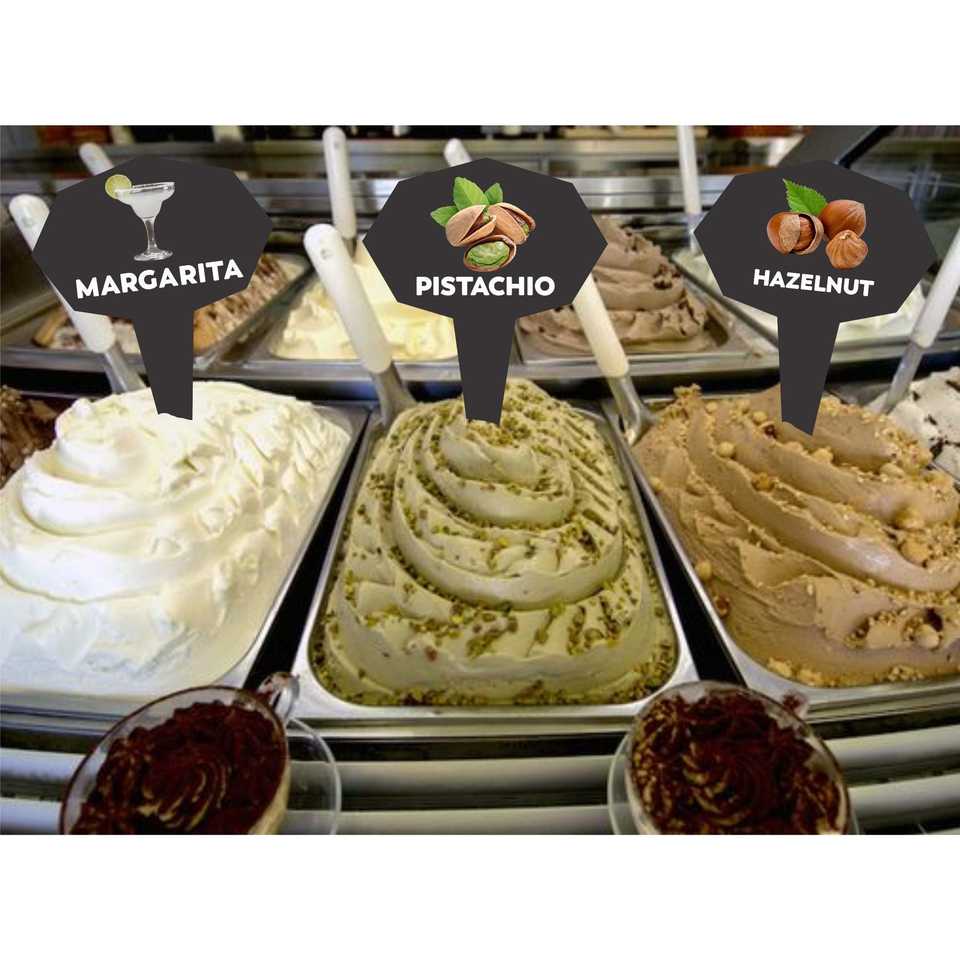 Ensemble de 12 pièces de marqueurs de saveur Gelato Autocollants de signe de crème glacée Étiquettes de saveur pour outils de crème glacée