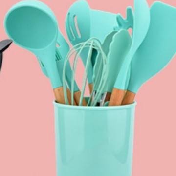 Ensemble d'ustensiles de cuisine en silicone 12 pièces avec manche en bois allant au lave-vaisselle pour Amazon ensemble de spatules de cuisson antiadhésives