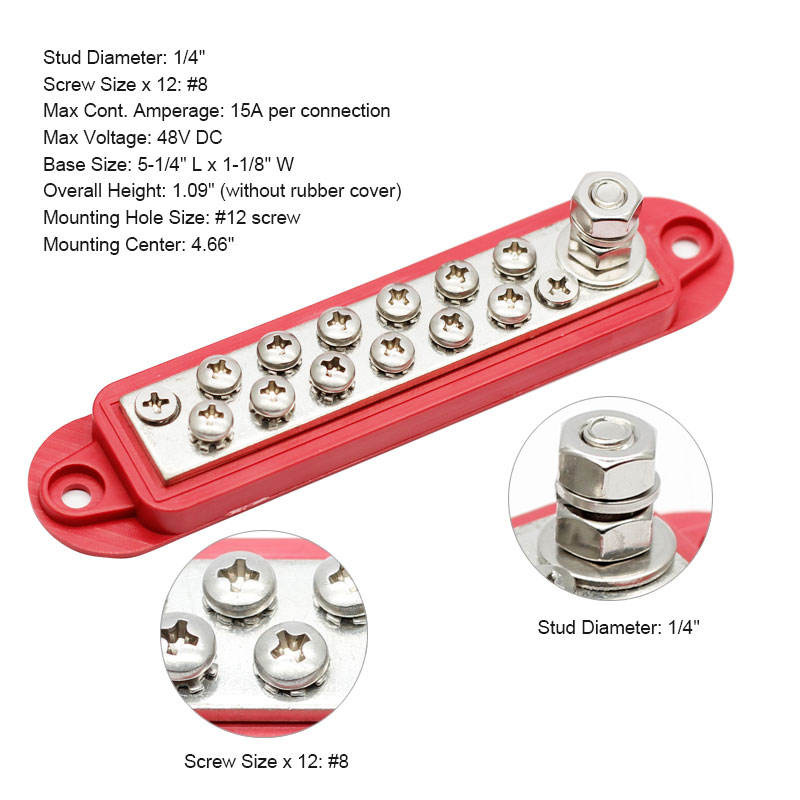 Barre omnibus 12 bornes 5.3 "bloc de Distribution d'alimentation/sol en laiton nickelé bateau RV batterie barre omnibus jonction