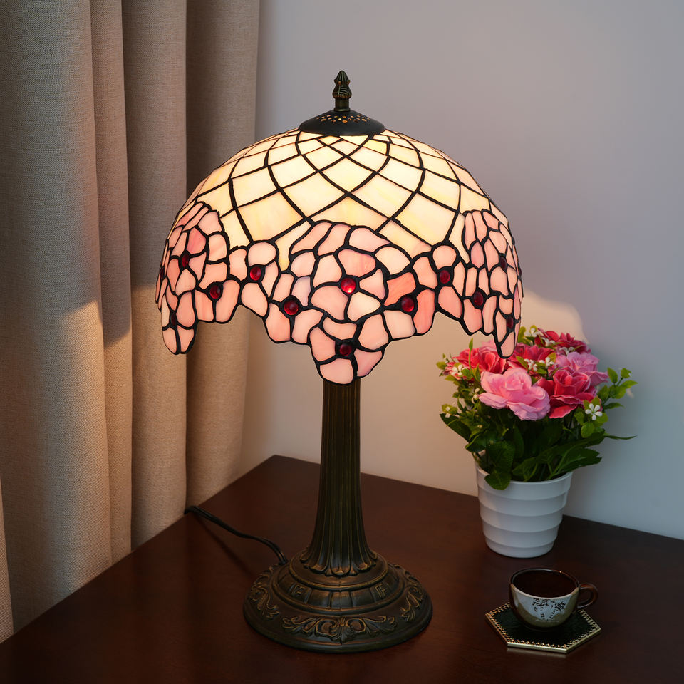 12 "Tiffany Vitrail Lampe De Table Jardin Américain rose Fleur De Cerisier Chambre Chevet Romantique Lampe De Bureau