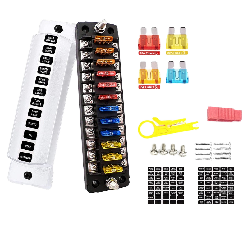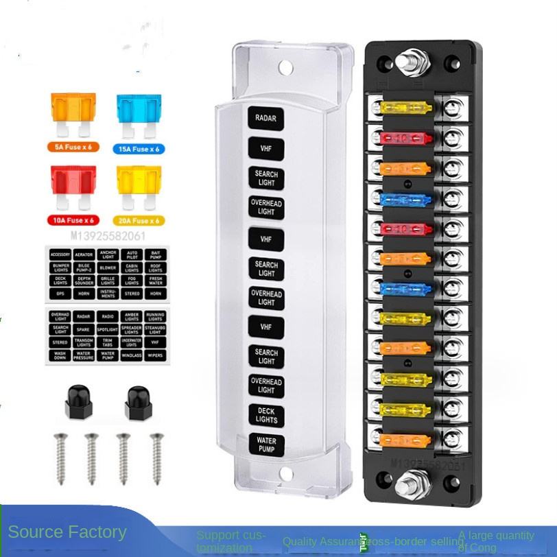 Boîtier de fusibles à 12 voies, bornier électrique pour voiture, camping-car, remorque, bateau 12V