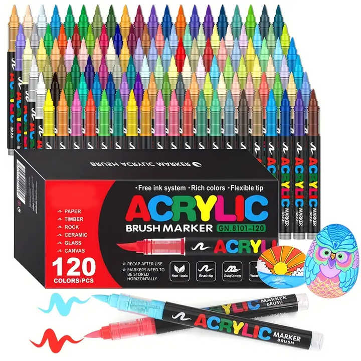 Ensemble de 120 marqueurs acryliques à pointe souple haute élasticité 1-5 mm, système d'encre gratuit et qualité artiste pour l'art professionnel