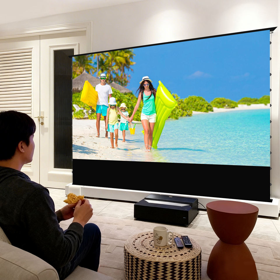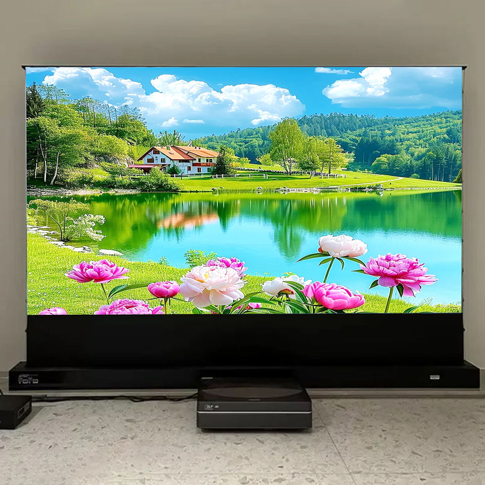 Écran de projection motorisé au sol de 120 pouces, Fresnel ALR, écran à ultra courte focale pour projecteur UST Awol Fengmi Hisense