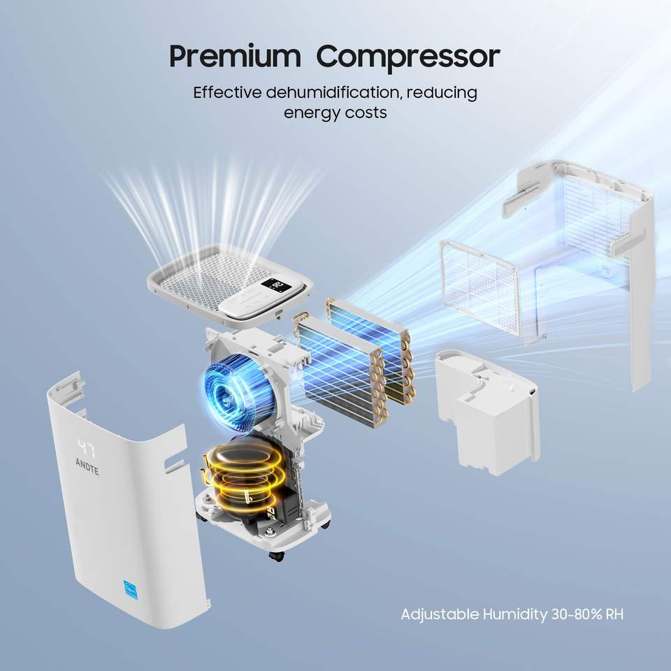 Déshumidificateur de panneau de commande tactile intelligent de 120 pintes pour grandes pièces 6500 pieds carrés pour sous-sol salon espaces de lavage de voiture tuyau de vidange