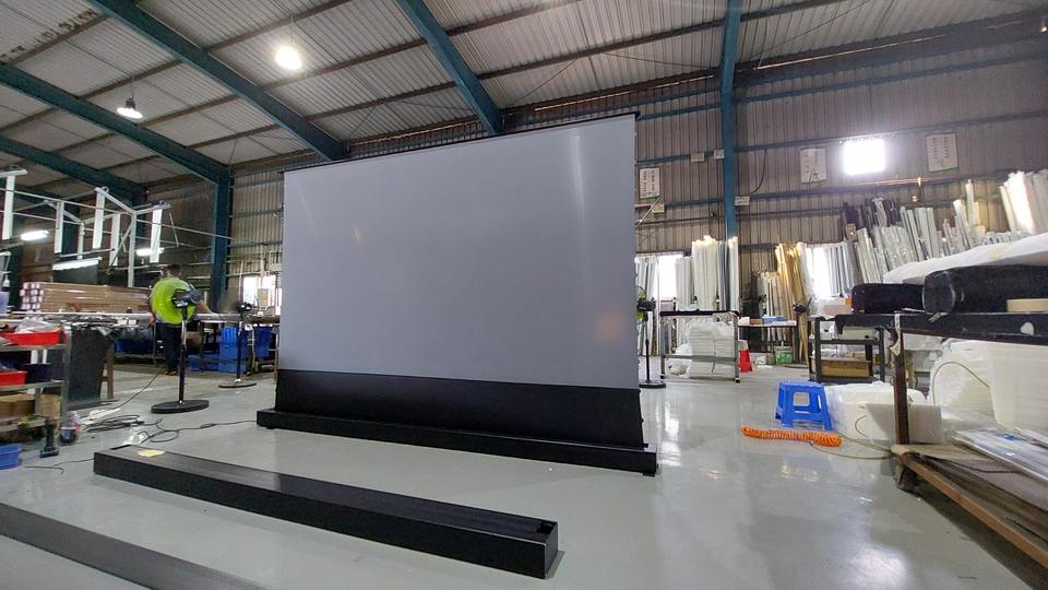 Télévision Vidéo 4K 3D 120" pour Home Cinéma avec Écran Motorisé Relevable au Sol, Projecteur Laser UST et Télévision Relevable