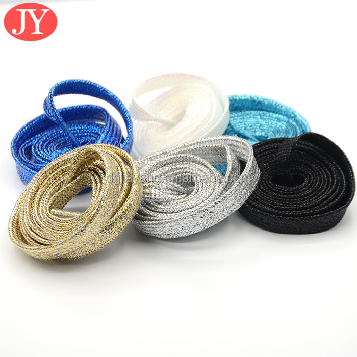 Lacets de chaussures de 120 cm, fabrication à double couche, lacets plats décontractés et sportifs, polyester, colorés, paillettes métalliques dorées