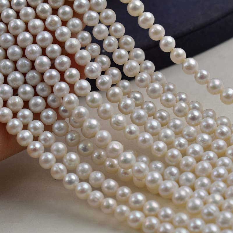 1200 Zhuji Natural White 5-6mm Near-Round Freshwater Pearl String Loose Pearls