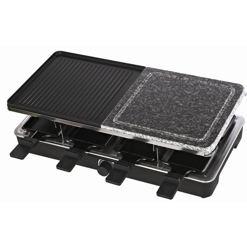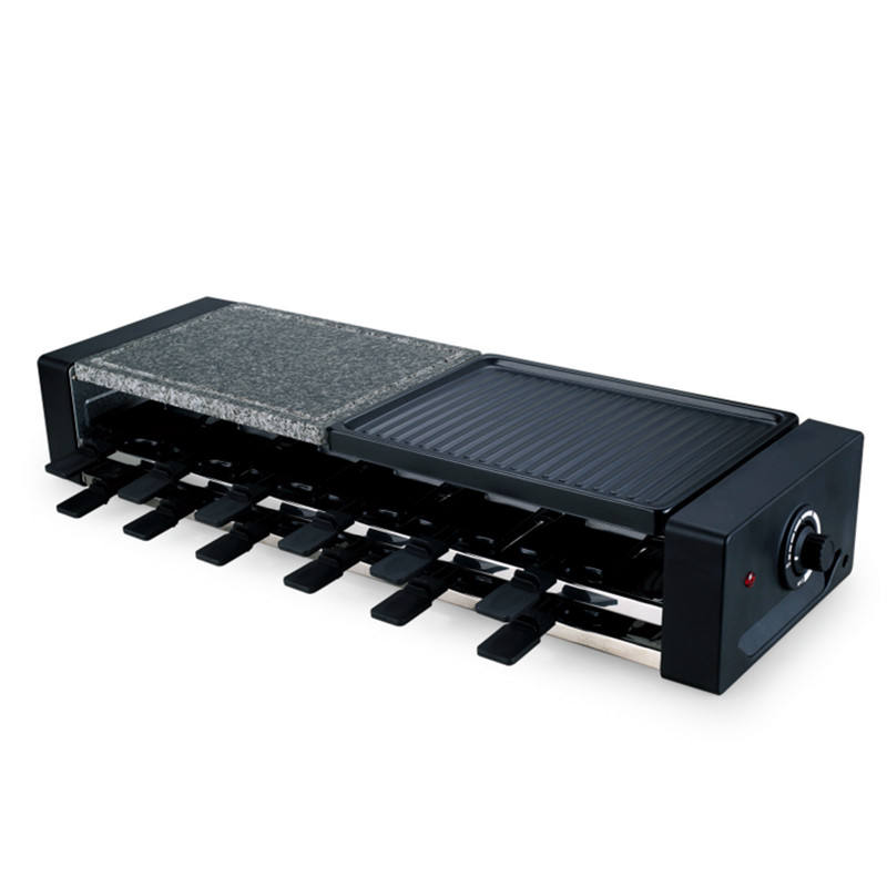 Appareil à raclette électrique domestique en bambou 1200W avec 8 poêles à griller, demi-plaque antiadhésive, demi-plaque en pierre