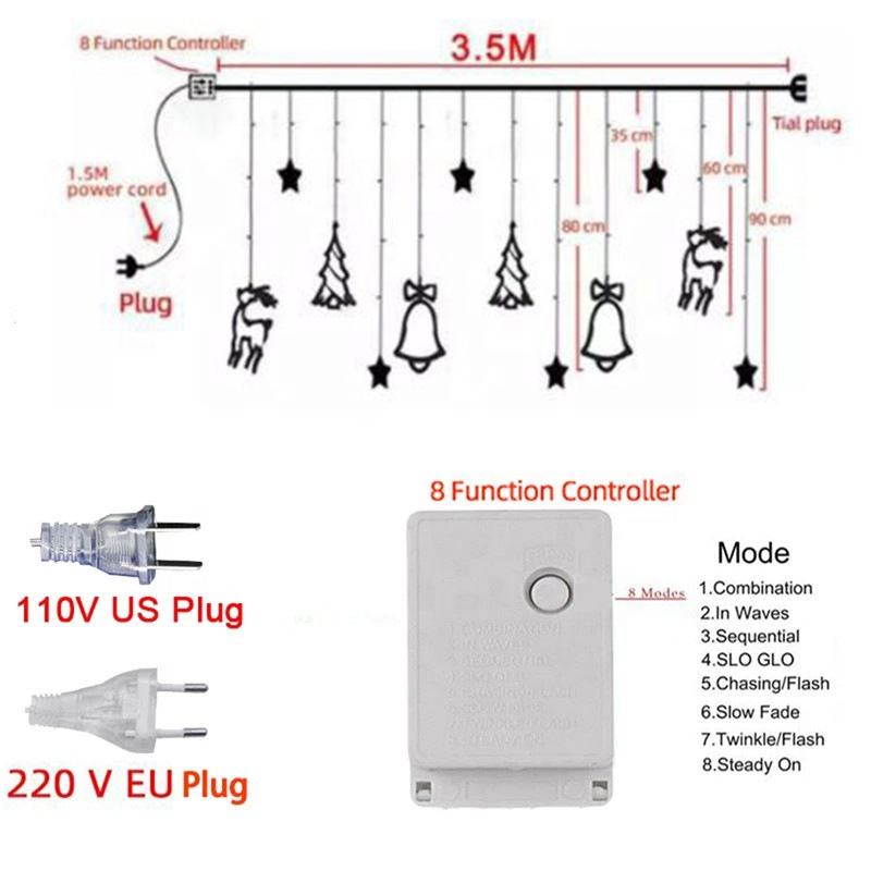 Guirlande lumineuse LED pour fenêtre, 120 LED, motif renne de Noël romantique, pour décoration intérieure et extérieure, chambre à coucher