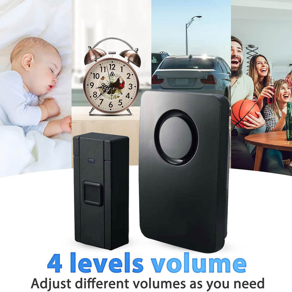 Sonnette sans fil longue portée 120 m, 36 mélodies, alarme puissante, étanche IP44, pour maison, école, extérieur, hôtel, télécommande
