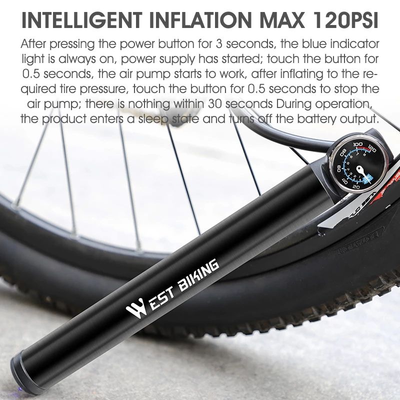 120PSI Smart électrique USB Rechargeable nouvelle pompe à vélo vtt vélo de route pneu Air cyclisme gonfleur