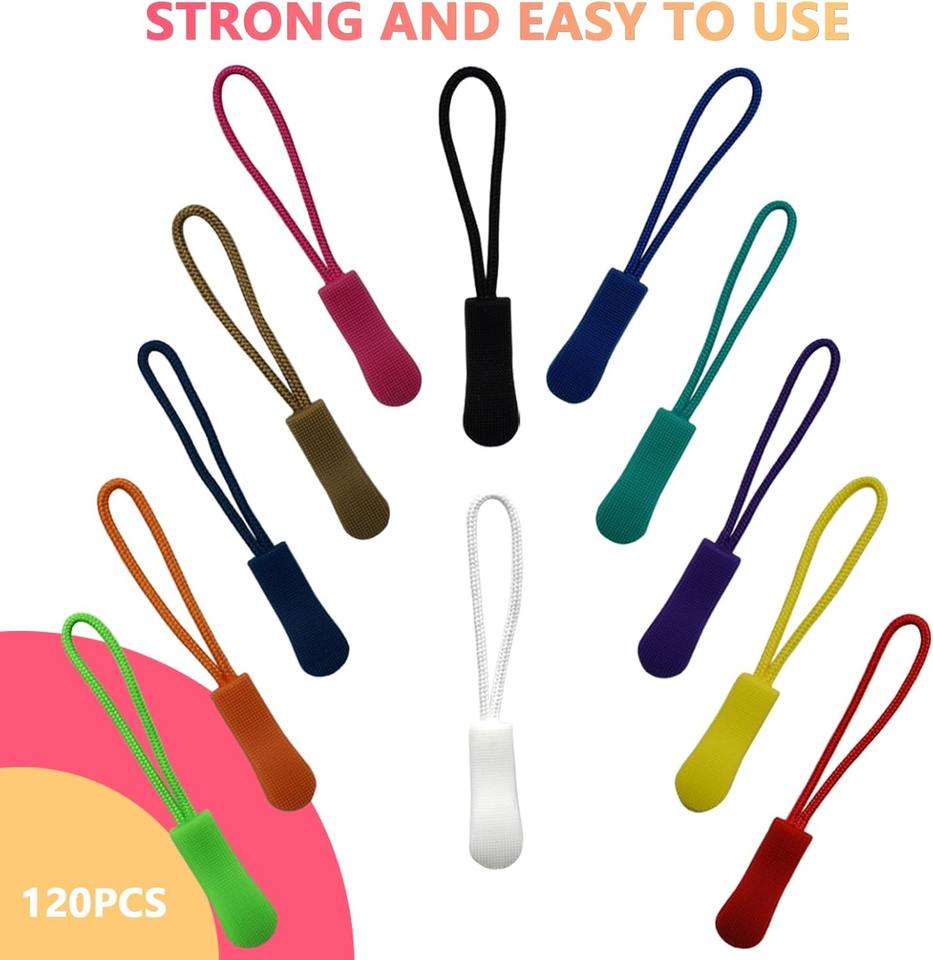 120 pièces de tirettes de fermeture éclair en nylon, rallonges de fermeture éclair, attaches de fermeture éclair, remplacement de tirettes de fermeture éclair