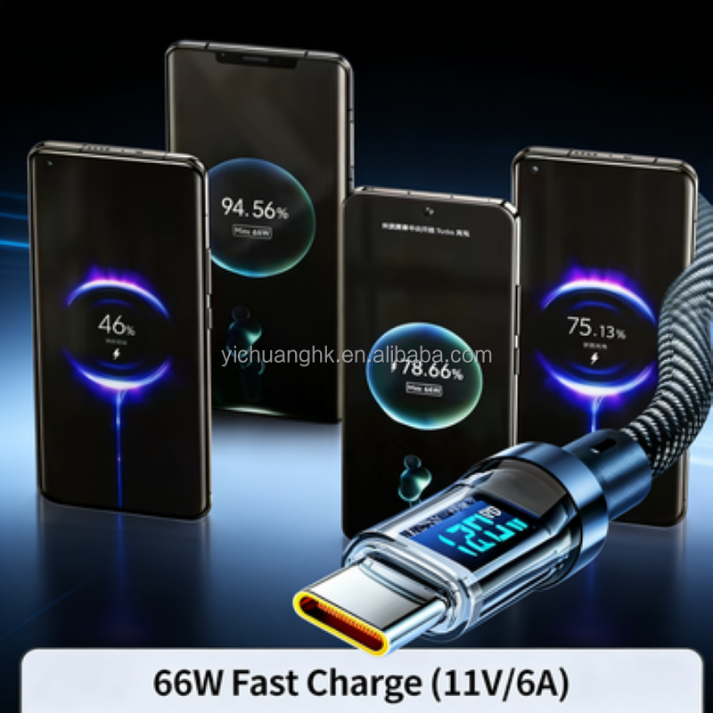 Câble de données en cuivre pur de 1 m avec affichage numérique en temps réel, charge super rapide Type-C 120W 5A (gaine en PVC)