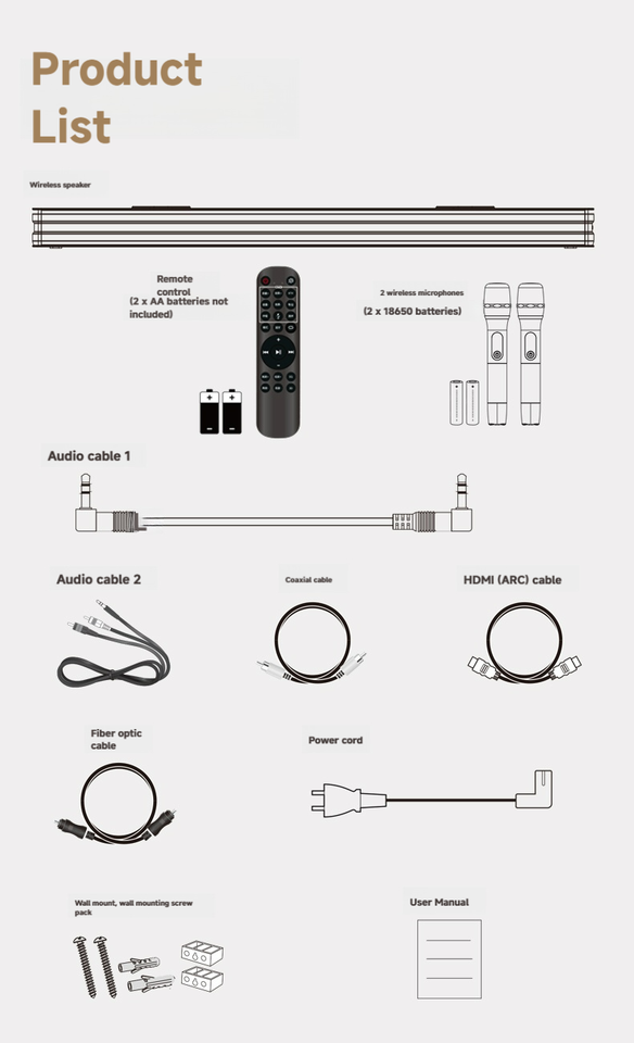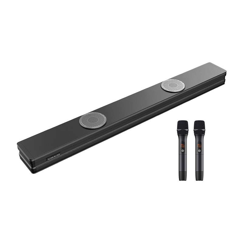 Barre de son TV tout-en-un 120W avec deux caissons de basses intégrés, microphone sans fil, système de cinéma maison pour karaoké