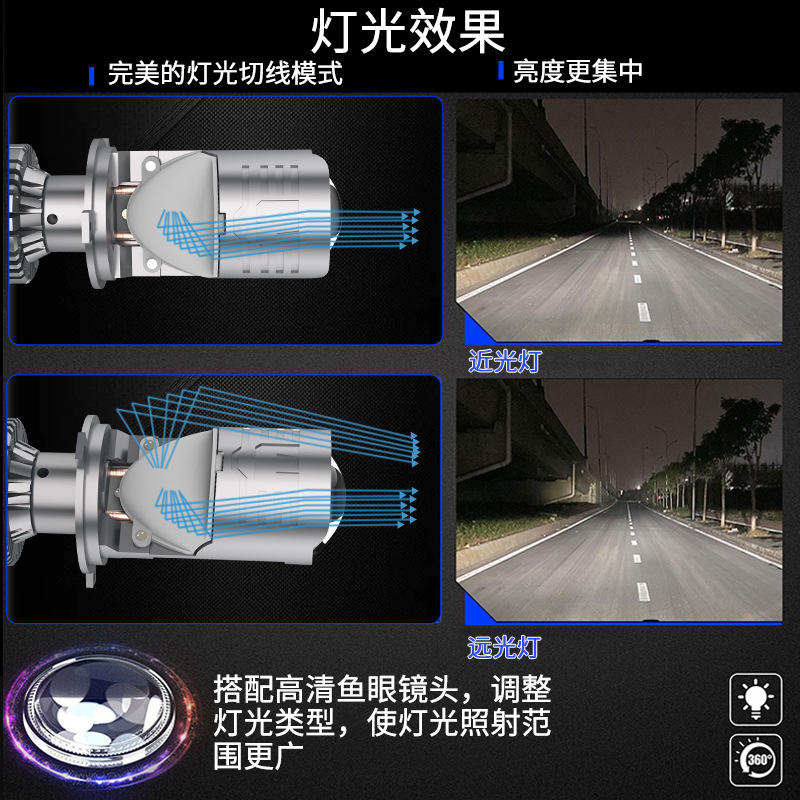 Phare Bi-LED 120W Super Lumineux 12000 Lumens Lentille T90 Projecteur Mini Direct Usine H4 Température de Couleur 6500K 12V Nouveau