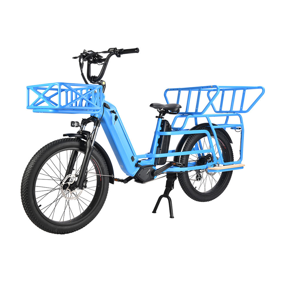 Vélo électrique à assistance au pédalage à longue portée de 120 km, moteur central de 500 W, longtail cargo motorisé avec panier en alliage d'aluminium, vélo cargo électrique 15ah