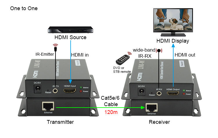 Transmission Distance:1080P 8-bit 120m(Maximum) over single CAT5E/6 /24AWG/Solid