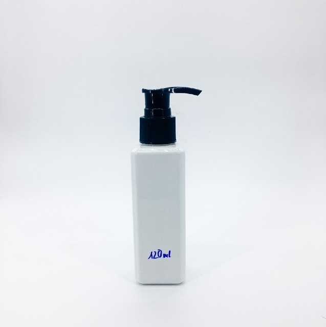 Bouteille en plastique PET cosmétique de 120ml épaule carrée bouteille PET blanc laiteux avec pompe pulvérisateur forme carrée