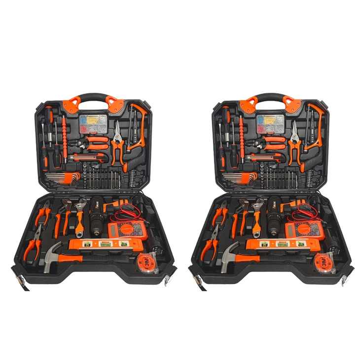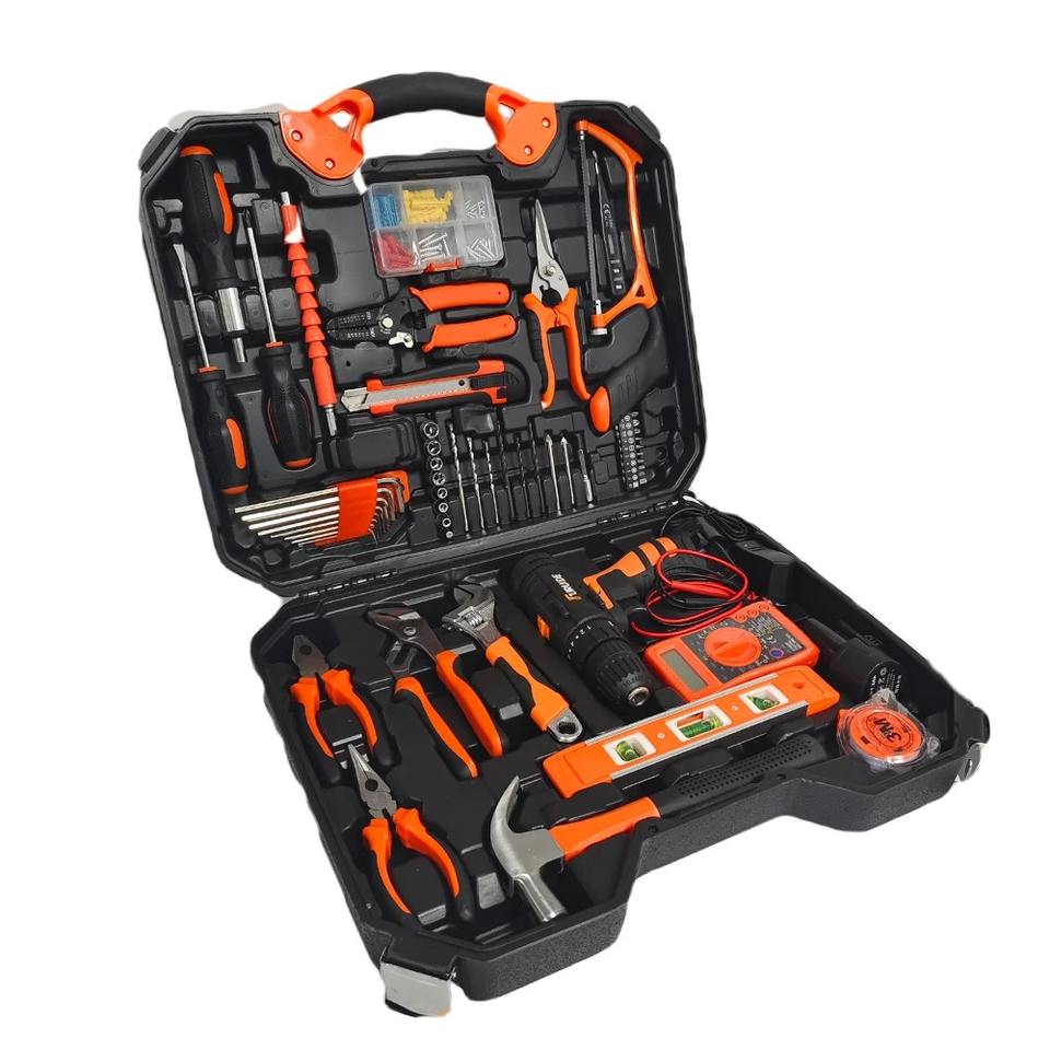 Ensemble d'outils électriques de 120 pièces, boîte à outils domestique, perceuse électrique, tournevis électriques, étui d'entretien pour électricien inclus, OEM
