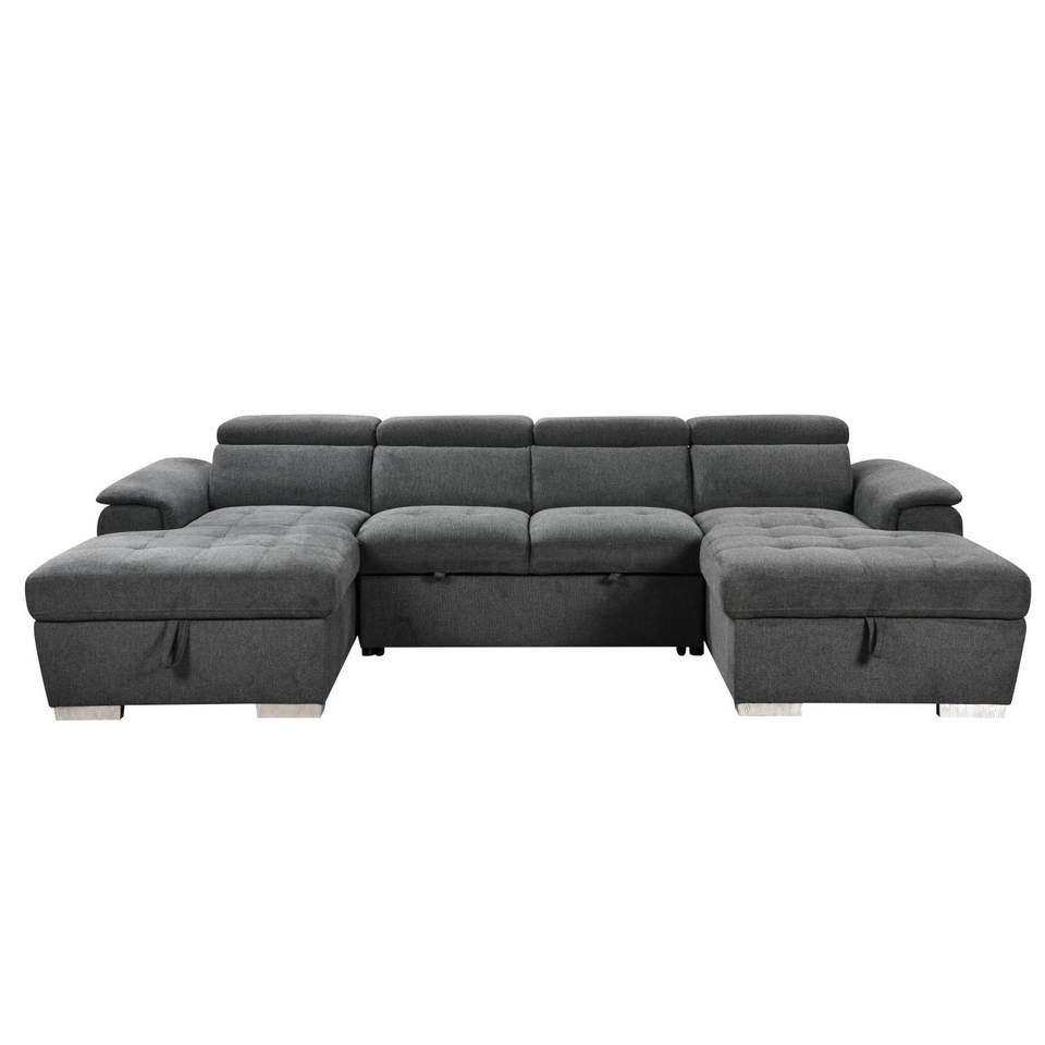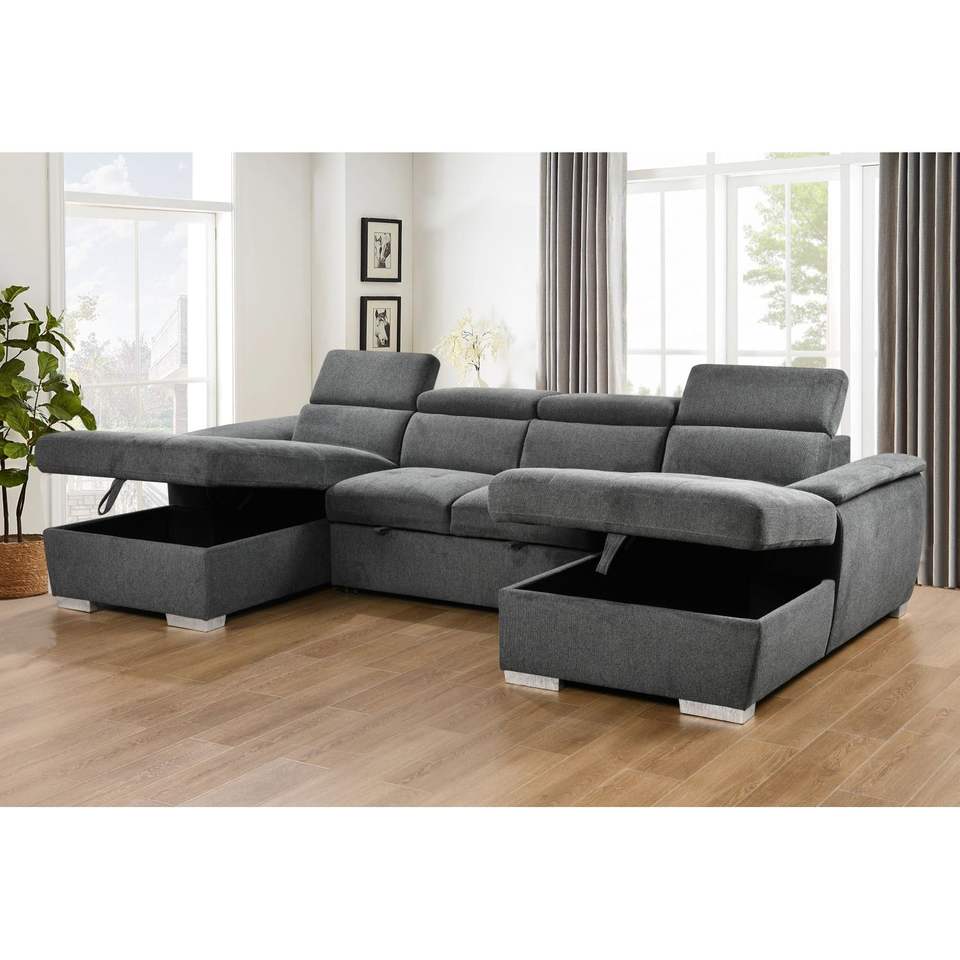 Canapé-lit surdimensionné en forme de U de 121 pouces Chaise de rangement double Mobilier de salon gris clair avec lit sectionnel à 2 tractions