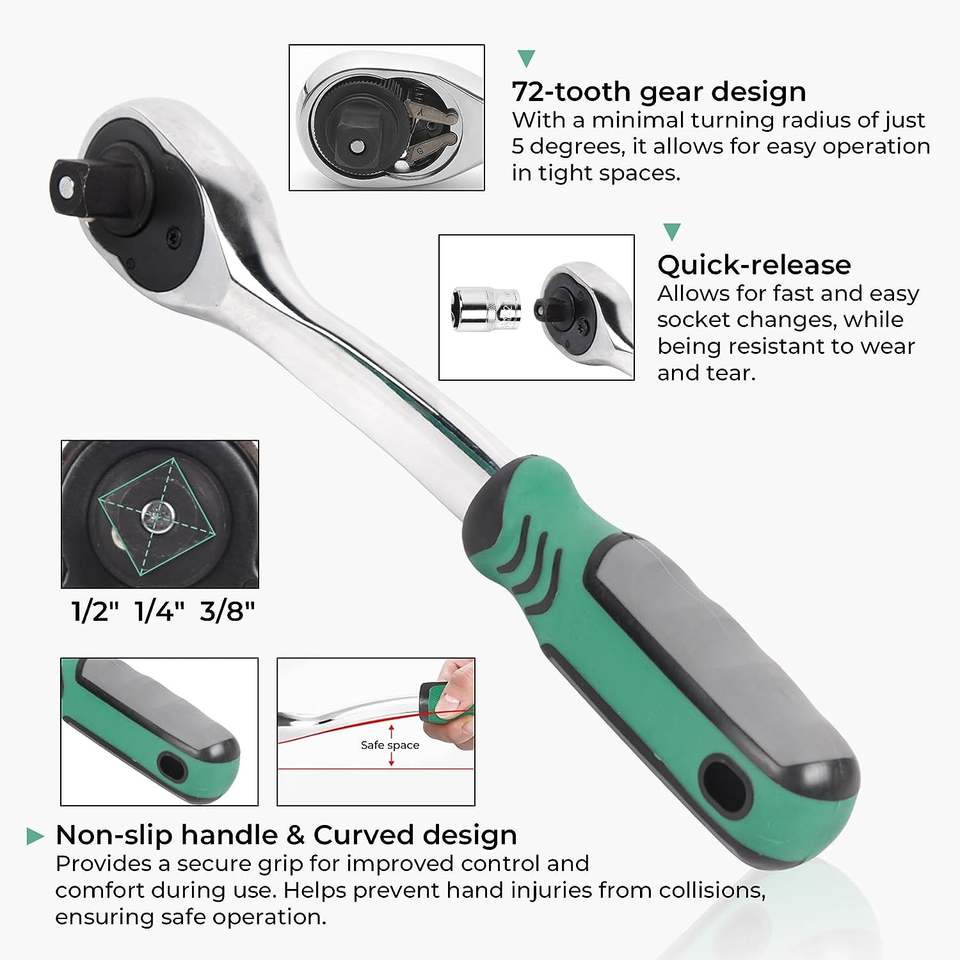 121 pièces Kit d'outils de mécanique 1/2 \ "1/4 \" 3/8 \ "ensemble d'outils d'entraînement de douille clé à cliquet douilles métriques tailles d'entraînement boîte à outils en plastique