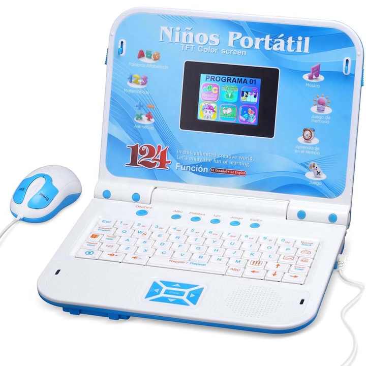 124 Modes d'apprentissage enfants anglais/espagnol bilingue ordinateur portable jouet éducatif multi-fonction écran couleur apprentissage Machine ordinateur