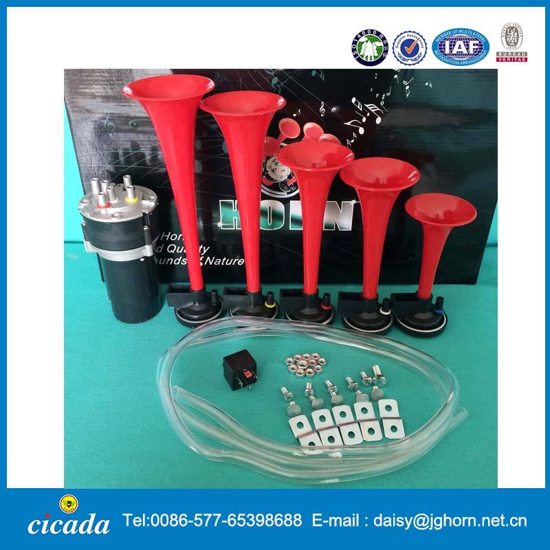 125db Rouge Musical La Cucaracha 5 trompette Klaxon Air Horn Kit + Compresseur + Tuyau Pour Voiture Bateau Camion Van