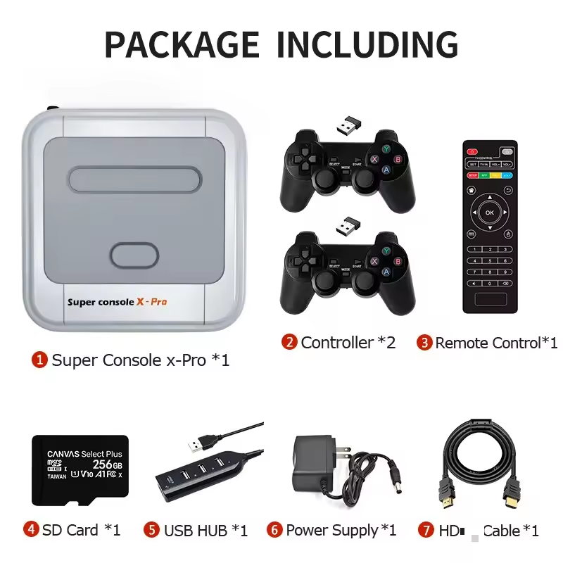 128G TV Box Gam Meilleure vente Super Console X Pro 256 Go 2.4G Manette de jeu sans fil 4K Console de jeu vidéo TV BOX Construit en 50000 jeux