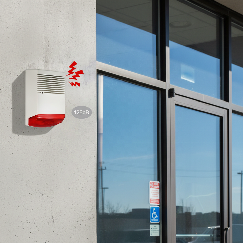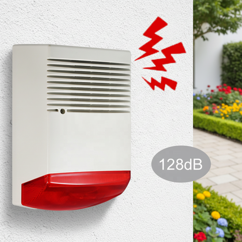 Sirène d'alarme extérieure étanche 128 dB, sonnerie puissante, lumière stroboscopique, 12 volts, alarme d'avertissement externe, 50 W de puissance crête, certifiée CE