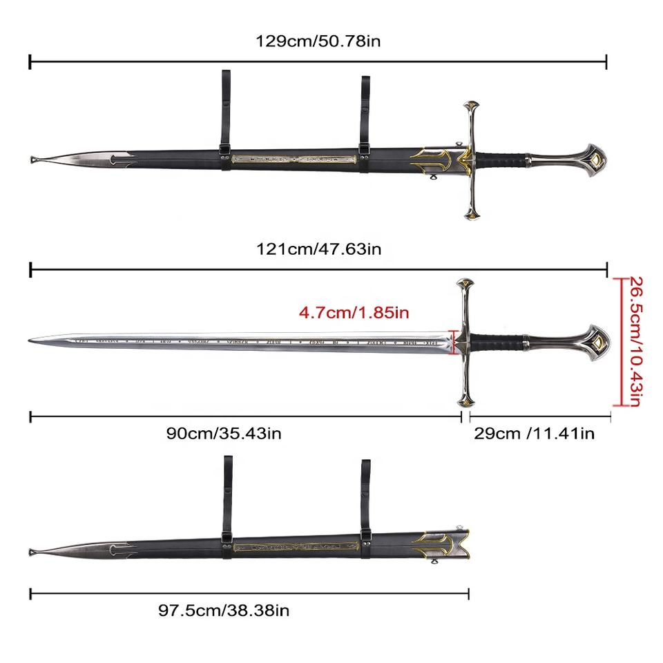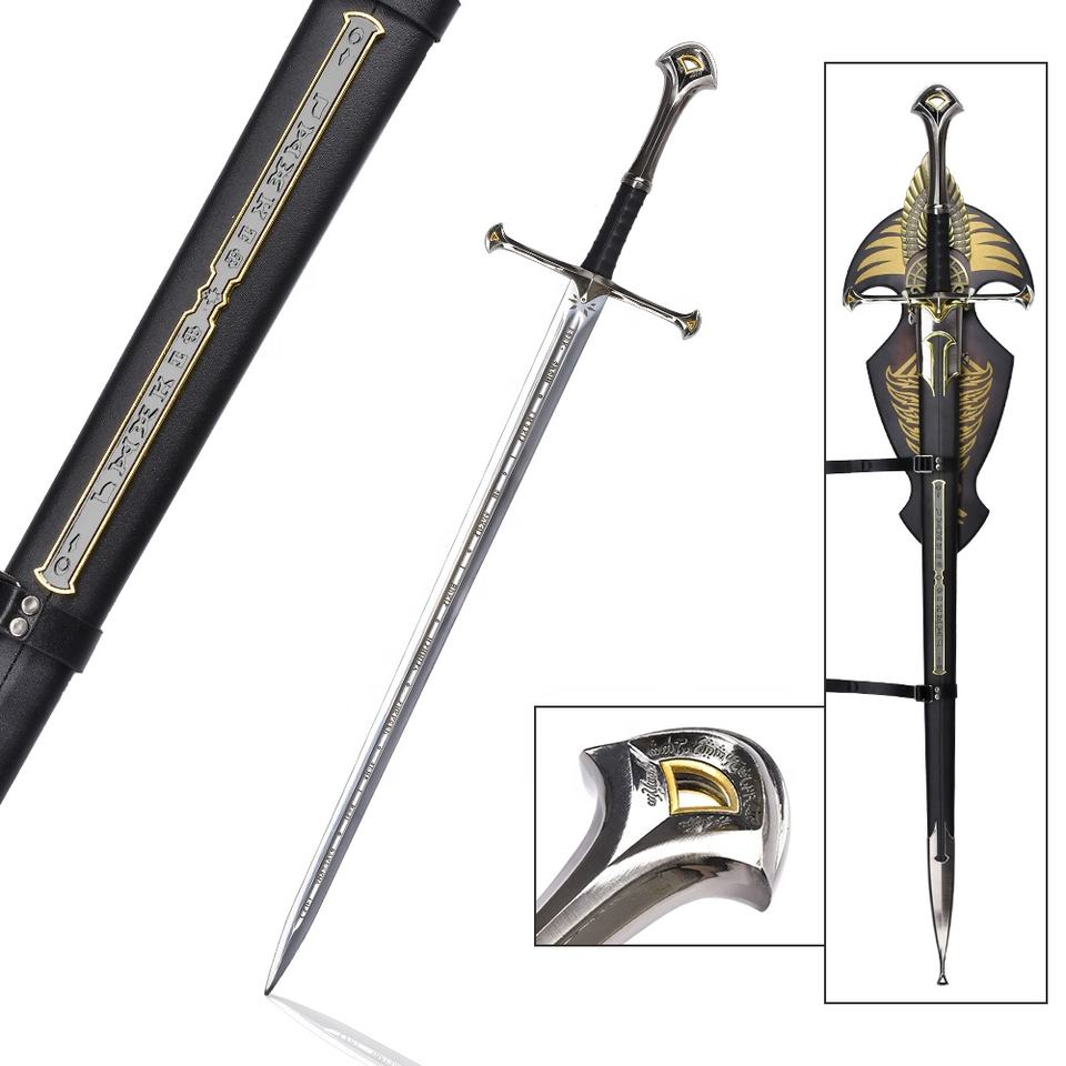 Épée Narsil Authentique du Seigneur des Anneaux LOTR de 129 cm, Lame 440ss, Réplique de l'Épée Andúril d'Aragorn, Arme Fidèle