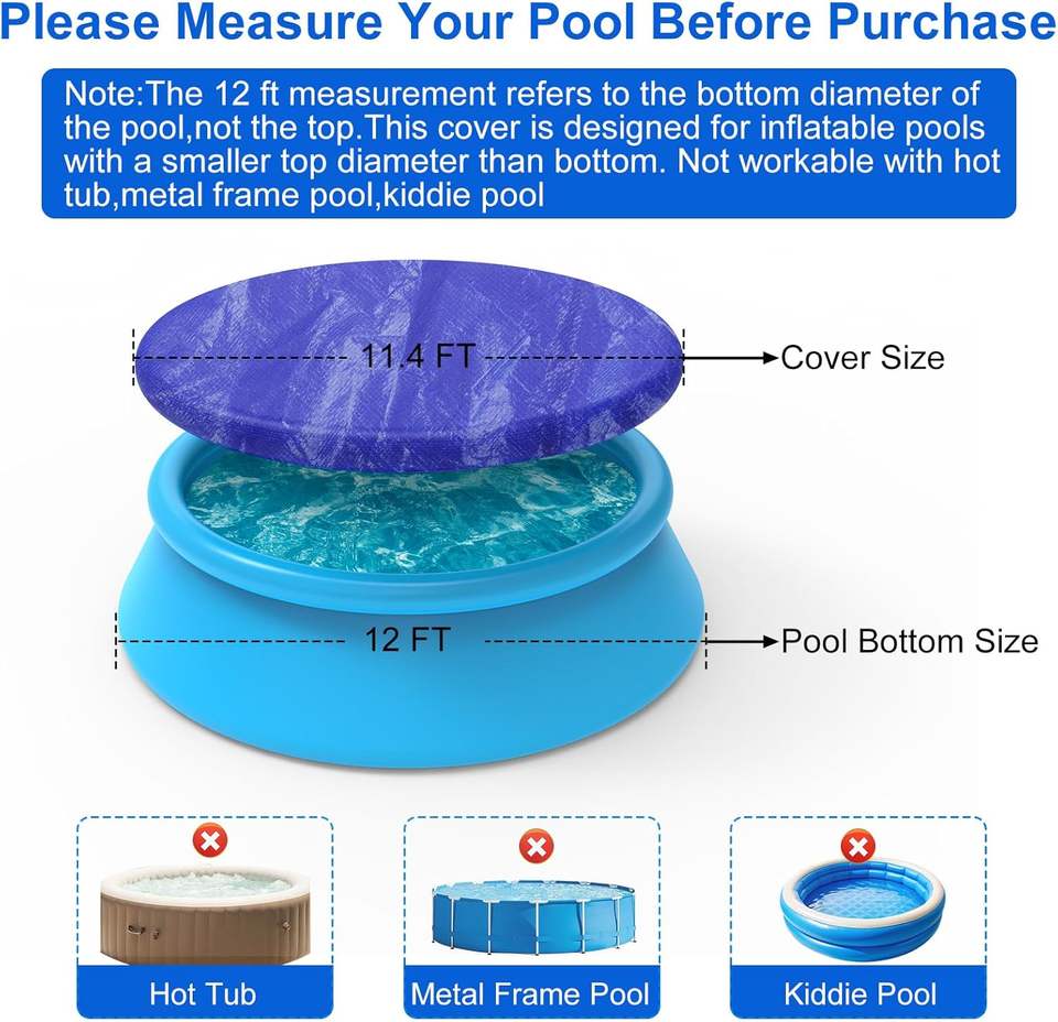 Couverture de piscine gonflable de 12 pieds pour piscines hors sol Intex, imperméable, anti-poussière, sans trous de drainage, empêche les feuilles et les débris
