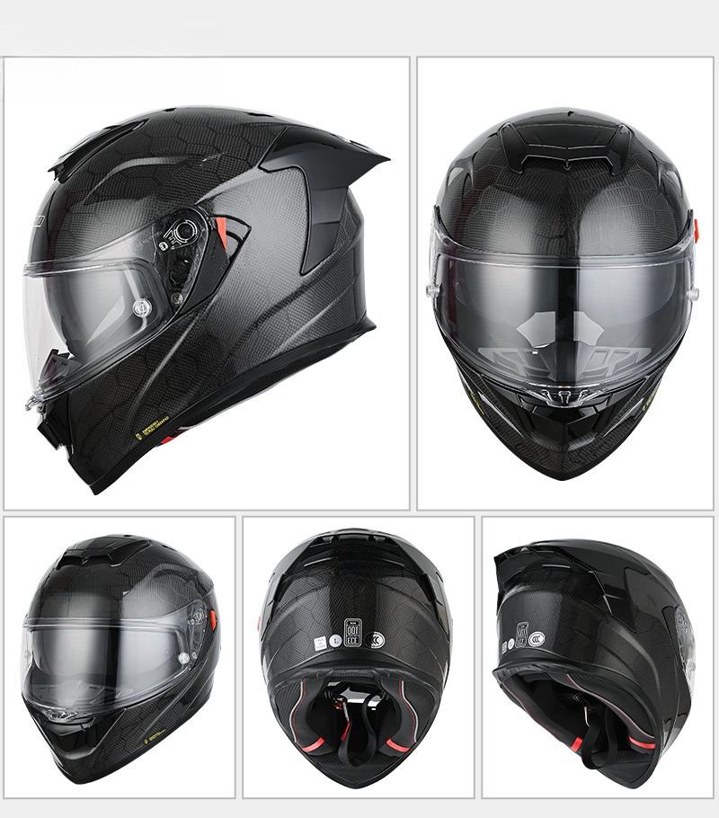 Casque de course intégral en fibre de carbone 12K avec double visière panoramique haute définition, grande aile arrière, homologué DOT, état neuf