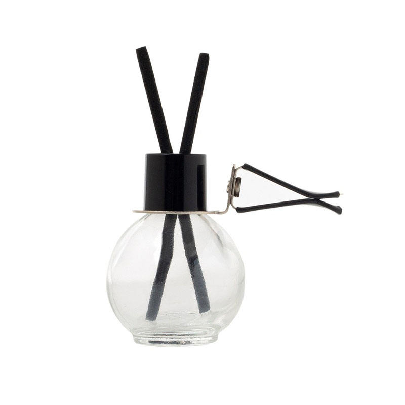 Diffuseur de parfum pour voiture rond de 12 ml avec bouchon noir et bâtonnets en fibre