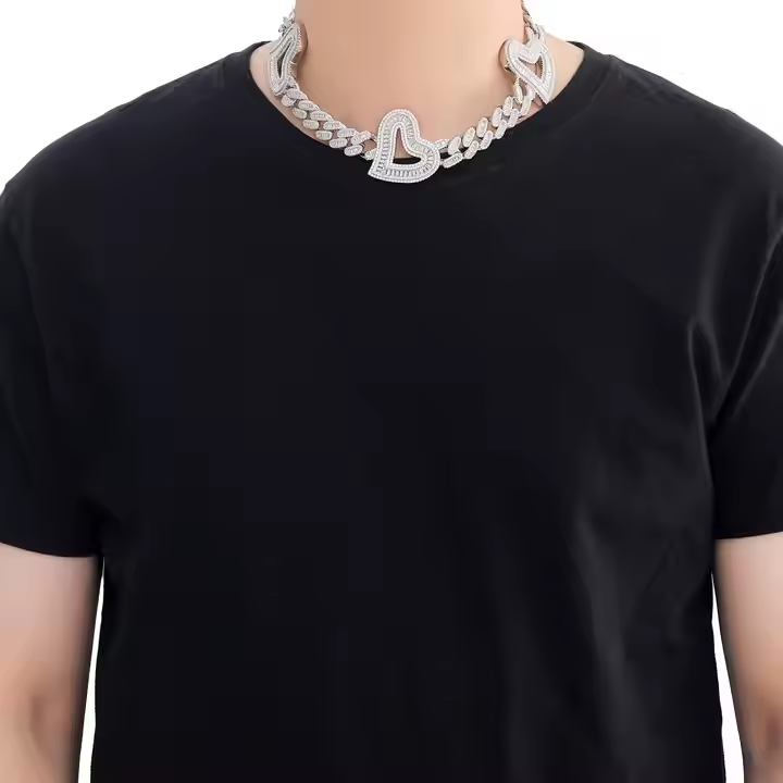 Chaîne cubaine classique en forme de cœur de Miami de 12 mm, en argent sterling et plaqué or, collier pour les occasions de mariage et de cadeaux