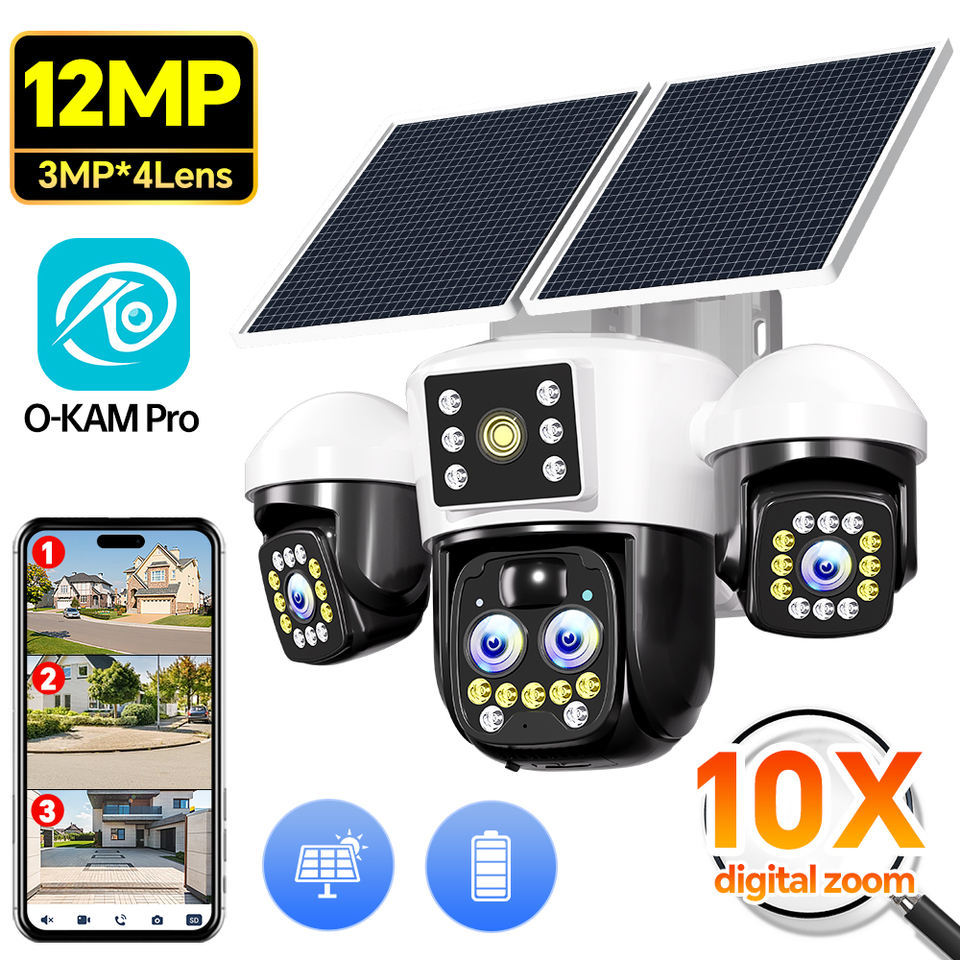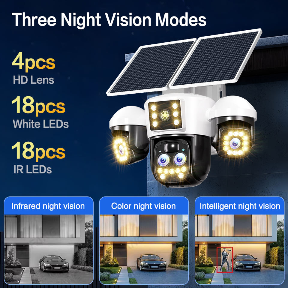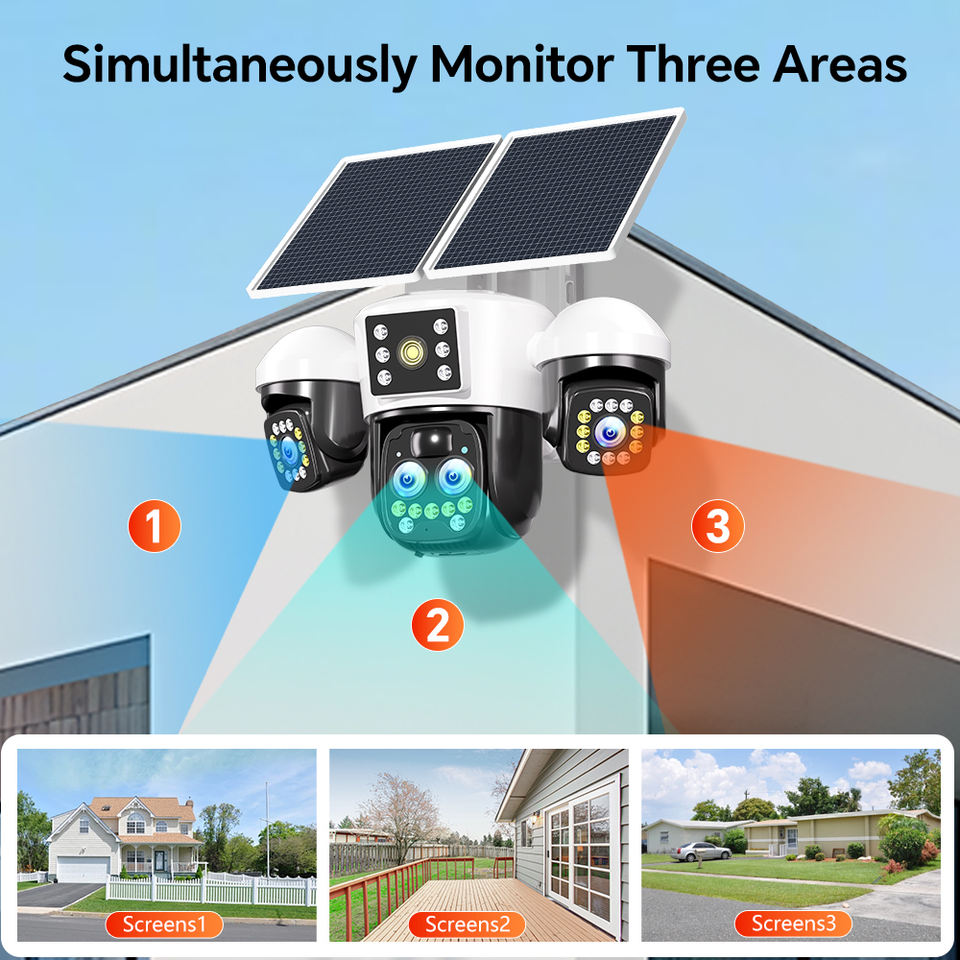 Nom du produit:Caméra de sécurité PTZ solaire extérieure 12MP à 4 objectifs et 3 écrans