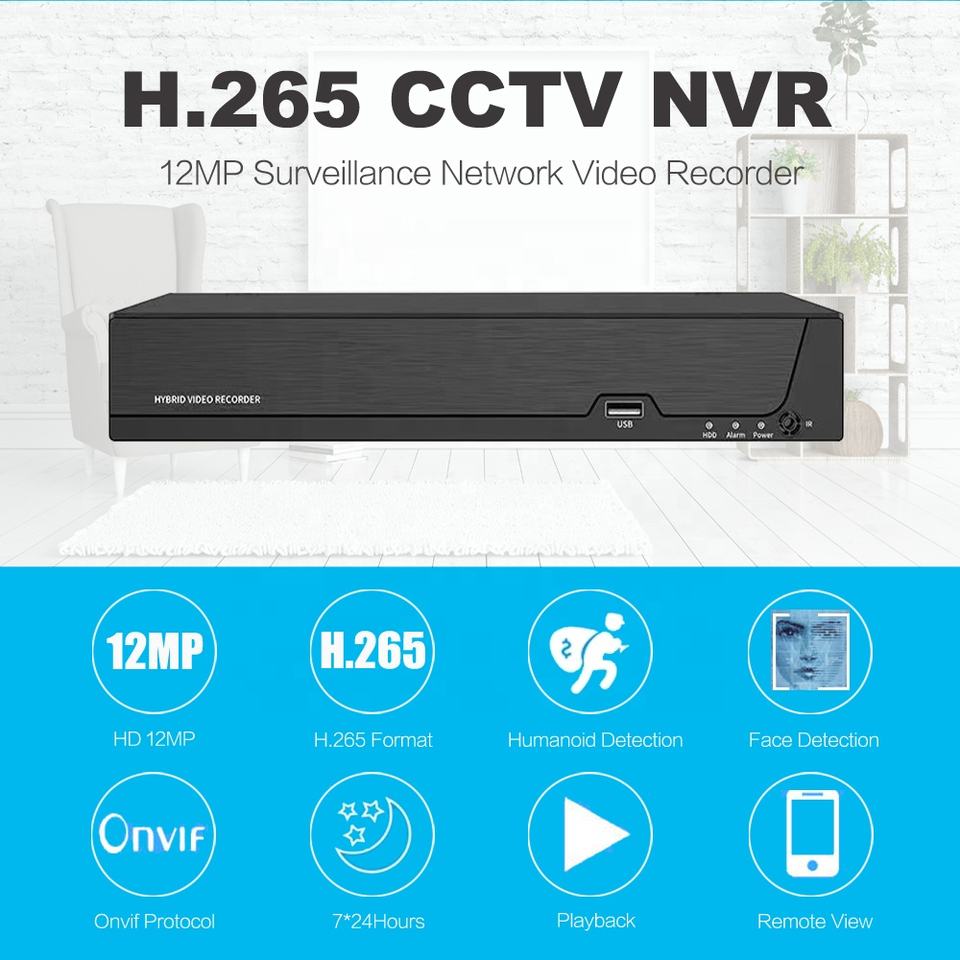 Enregistreur vidéo réseau CCTV 12MP NVR avec détection faciale par IA, visualisation sur téléphone, VMS gratuit, détection de mouvement, configuration facile, H.265 CCTV NVR 36 canaux