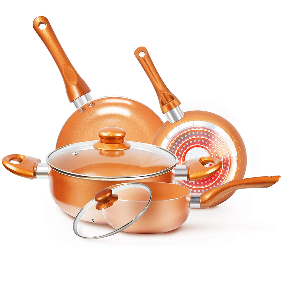 12Pc Tri Ply En Acier Inoxydable Cuivre Cuisine Ustensiles De Cuisine Four Hollandais Soupe Lait Steak Marmite Cuivre Marmite Pan Ustensiles De Cuisine Ensembles