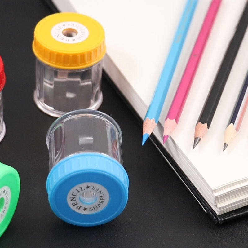 12 pièces / boîte Retour à l'école Rouge Jaune Vert Bleu Taille-crayon manuel à trou unique pour crayons de 8 mm de diamètre Crayon