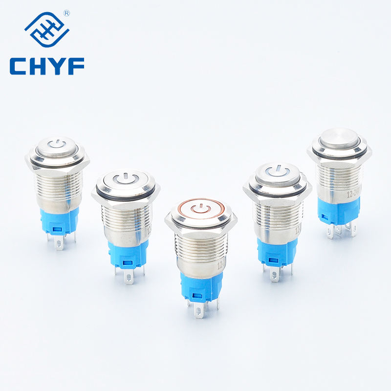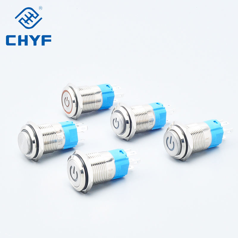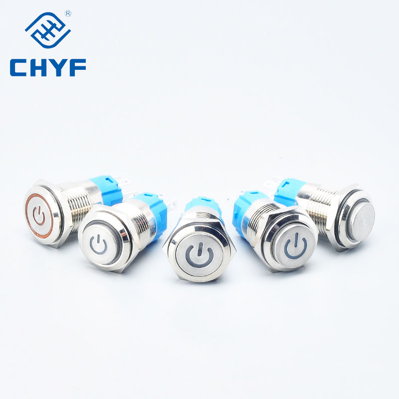 12V 16mm LED Acier Inoxydable Tête Plate Button16mm Auto Retour Momentané Laching Métal Bouton Poussoir Interrupteur Avec Lumière