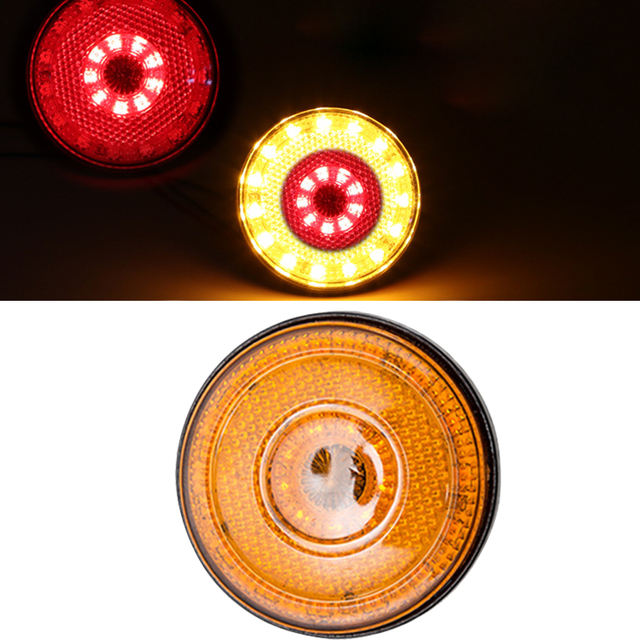 Feu latéral de voiture LED 12V 24LED, feux arrière ronds rouges ambrés, feu de brouillard arrière, feu de Stop, de freinage, de marche arrière pour remorque de camion