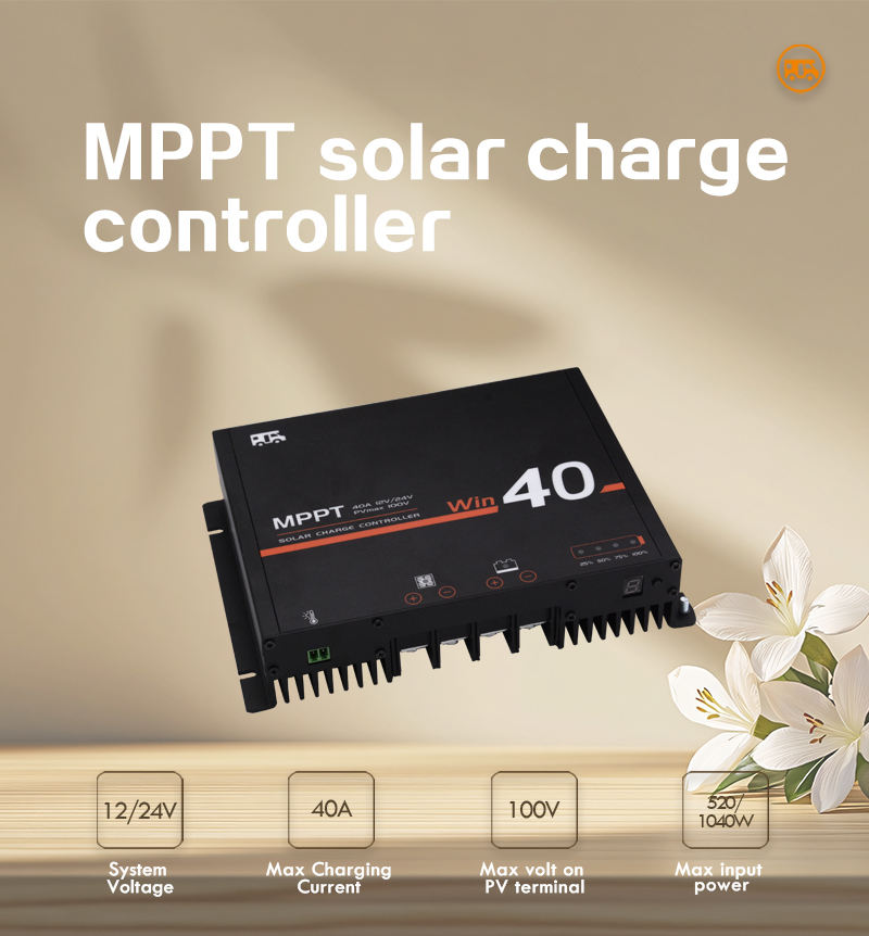 Contrôleur de charge solaire MPPT 12V 24V 40A pour tous types de batteries, protection IP54, puissance PV maximale 520W/1040W pour camping-car et caravane