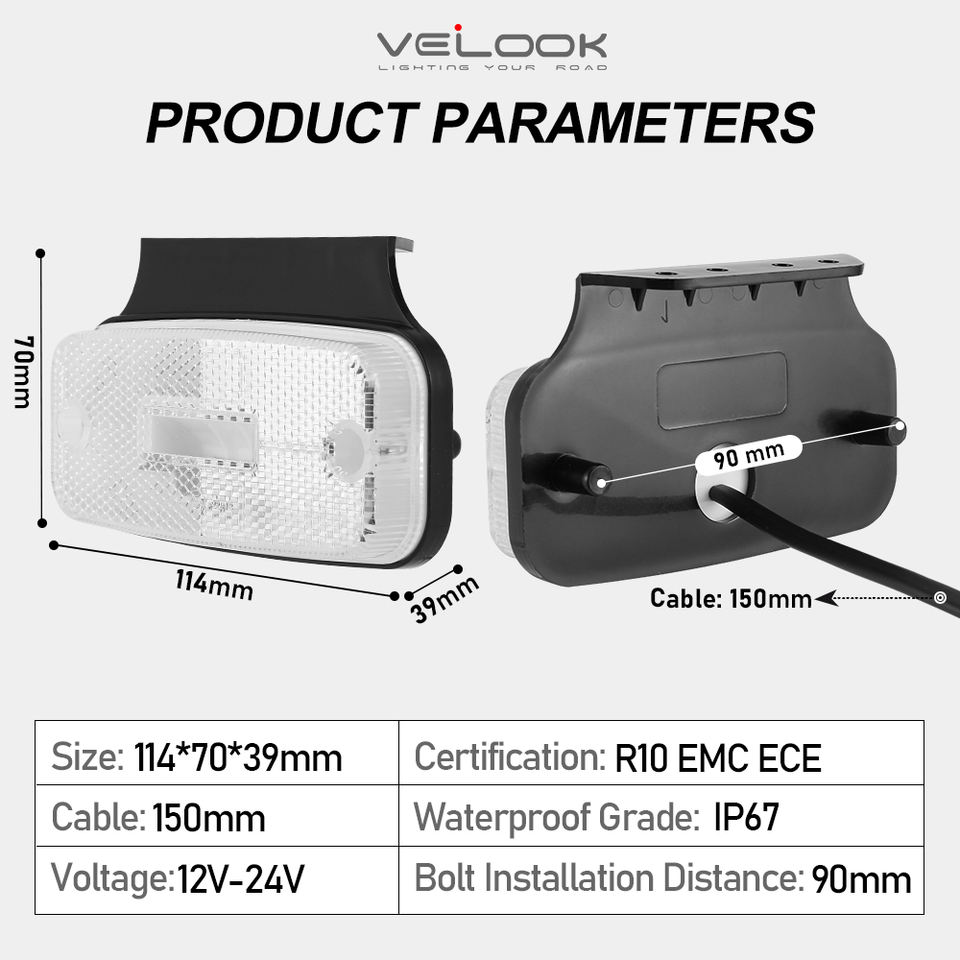 Feux de position avant LED 12V 24V pour remorque, feux de délimitation, feux de gabarit, homologués ECE, lampe de position blanche LED pour remorque et camion