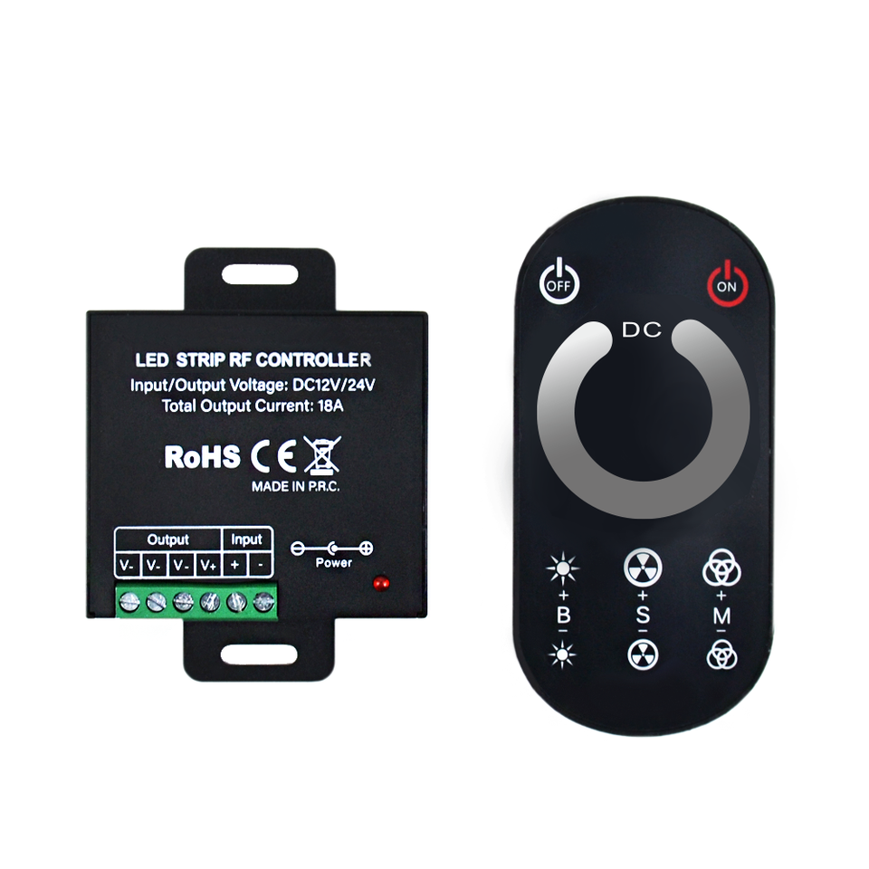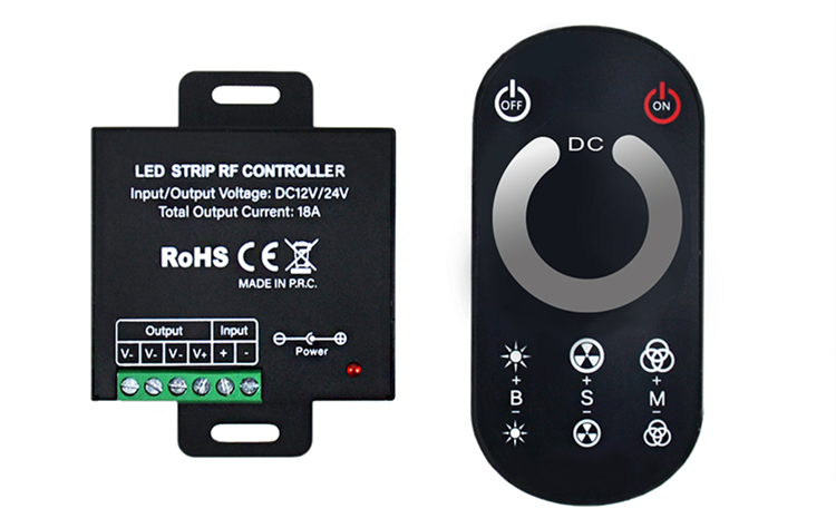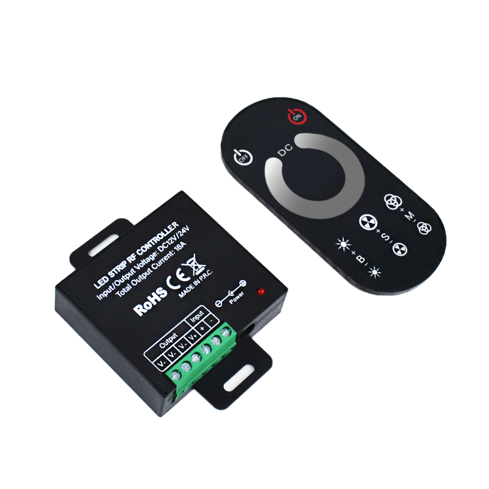 Variateur LED sans fil RF 12V 24V AP 3 canaux 18A portée 20M garantie 3 ans télécommande tactile multifréquence en plastique simple