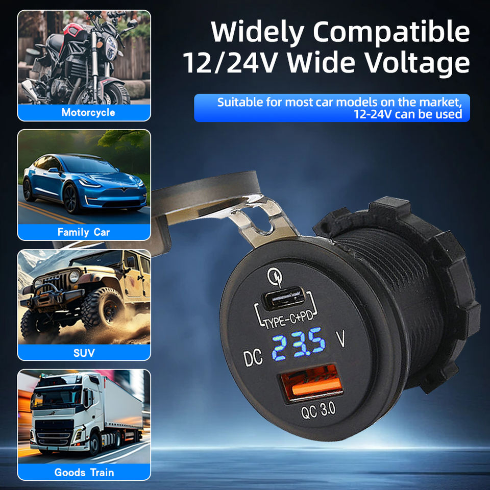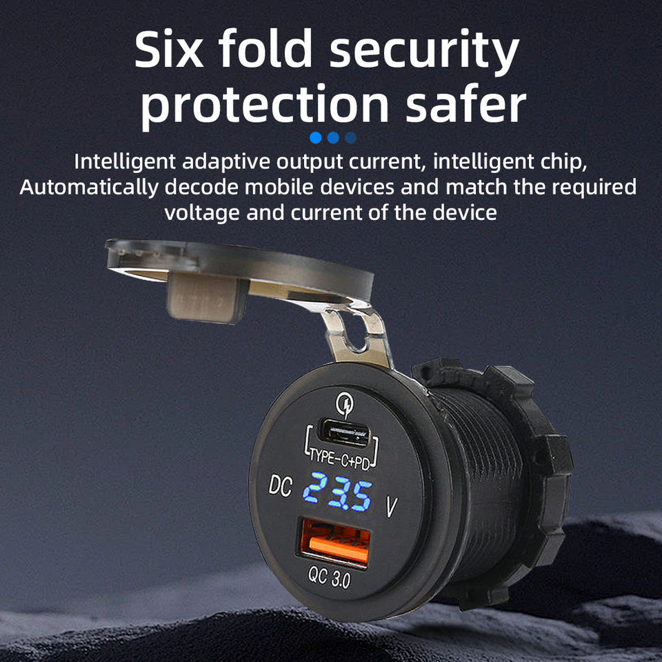 Chargeur de voiture USB 12V 24V étanche IP65, adaptateur de charge rapide robuste pour automobile, camion, bateau, moto