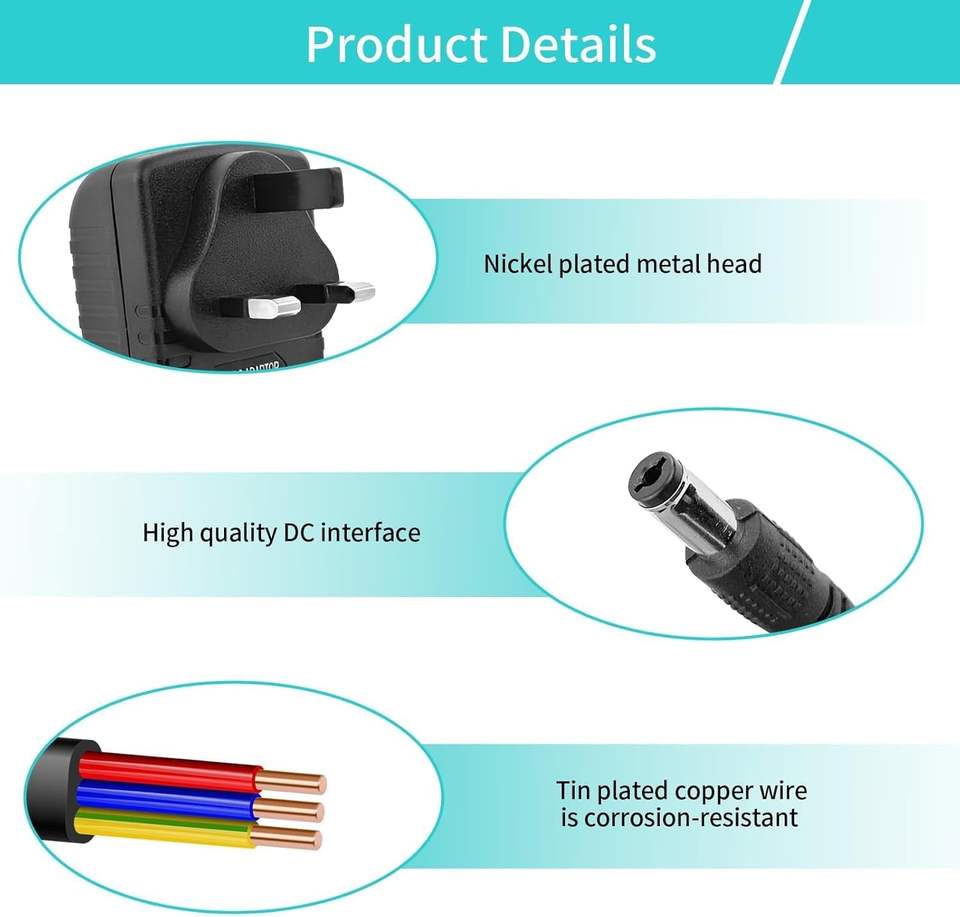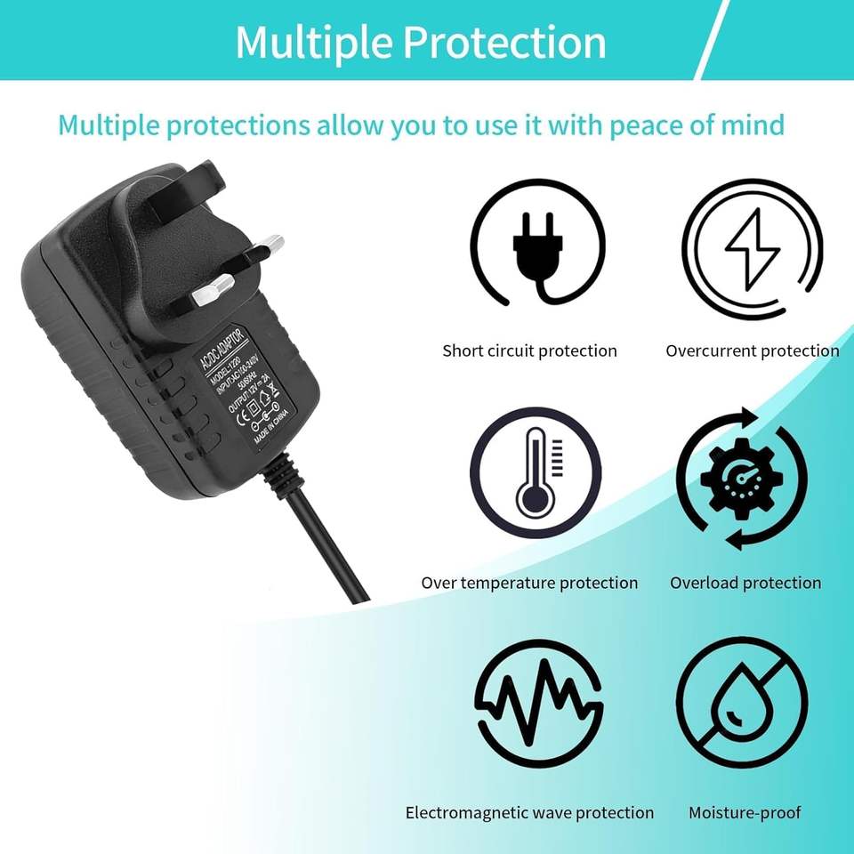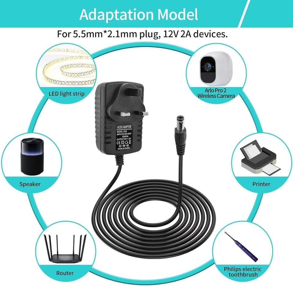Adaptateur secteur 12V 2A AC/DC 100-240V 50/60Hz Prise 5.5x2.1mm pour caméras de vidéosurveillance Arlo Pro 2/3, bandes LED et routeurs/moniteurs vidéo/audio