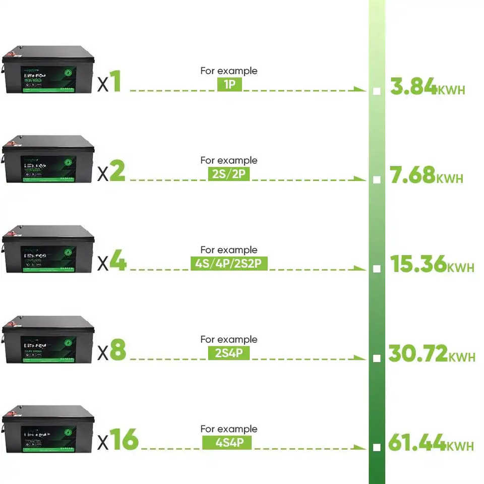 Batterie au lithium-ion 12V 300Ah pour usage domestique avec BMS, cellule Lifepo4 pour système d'énergie solaire, bateaux, camping-cars, avec 100ah 150ah 200ah