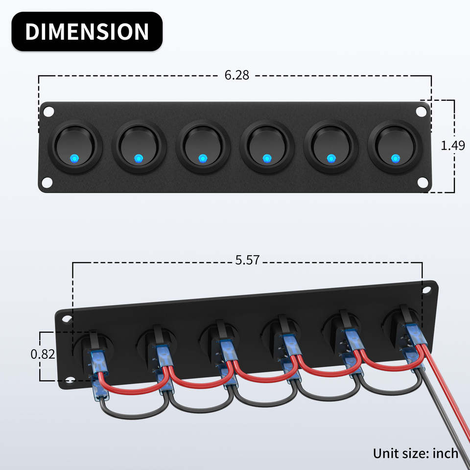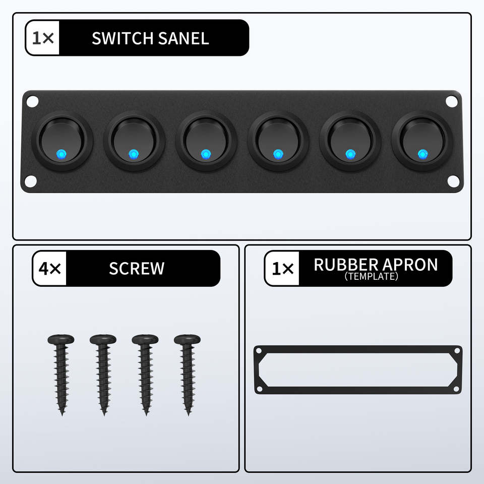 12V 6 Gang Green LED Illuminated ABS Car Switch Panel Round SPST ON-OFF Rocker Switch for Autos Trucks Boats RVs-New Condition