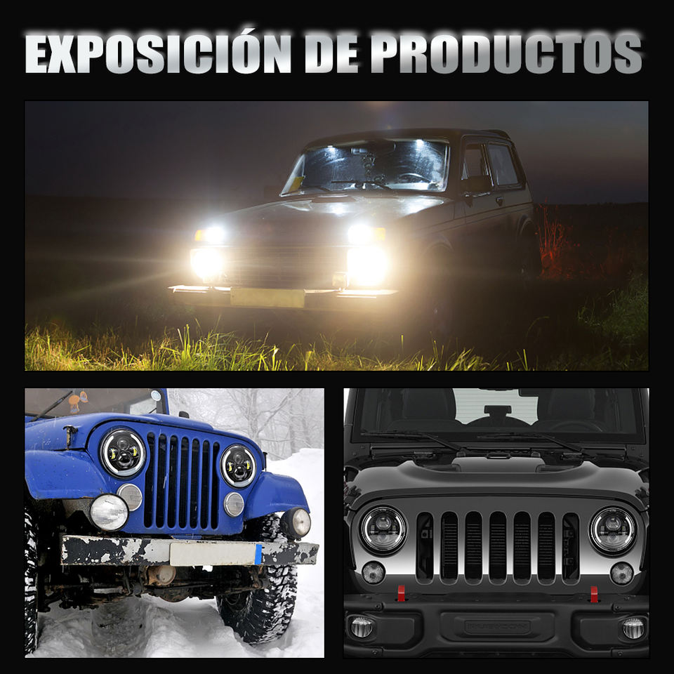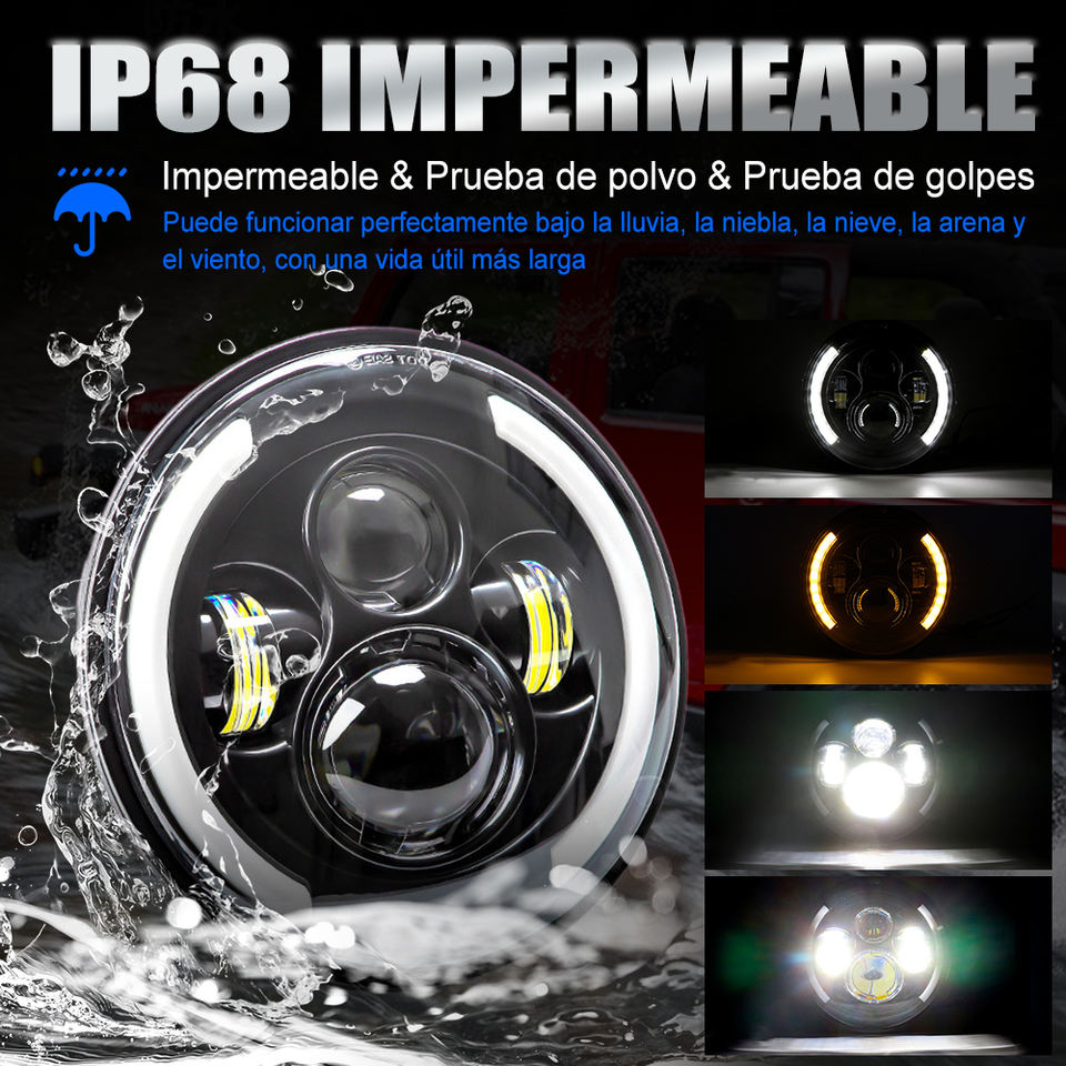 Phare LED 12V 7 pouces avec halo DRL et clignotant ambre pour Jeep Wrangler et voitures classiques (style œil d'ange)