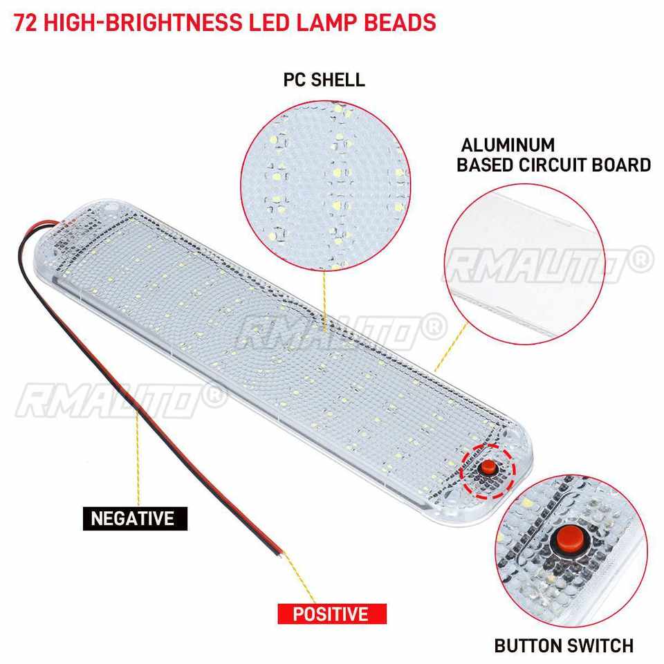 Barre lumineuse LED 12V-80V pour intérieur de voiture, avec interrupteur marche/arrêt, pour fourgonnette, camion, camping-car, caravane, camping, bateau, 24V