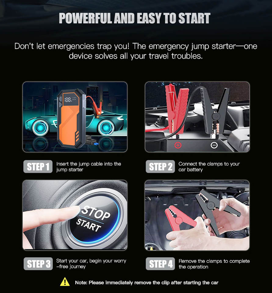 Lumière SOS, Gonfleur de pneu, Démarreur de batterieFonction